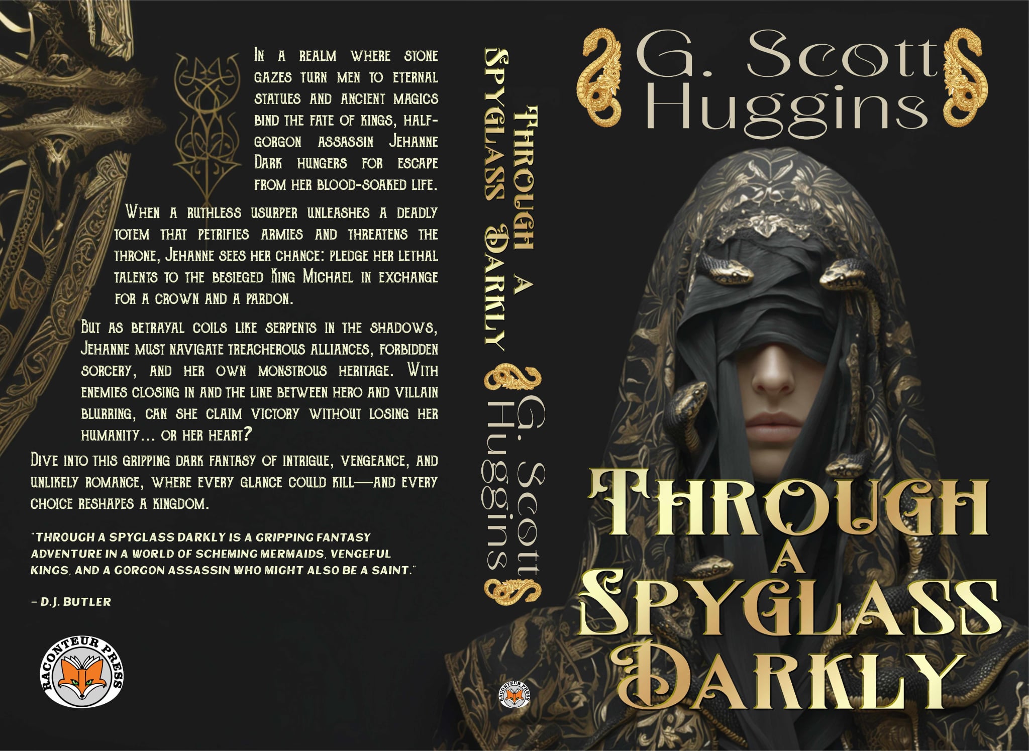 | I’ve been hinting at it for a long time, now, but the folks at Raconteur Press are ready and Through A Spyglass Darkly, the first book in The Adventures of Jehanne Dark, is ready for release on January 28th, but you can preorder it on January 14th! In a realm where stone gazes turn men to statues and ancient magics bind the fate of kings, Jehanne Dark, daughter of men and gorgons, hungers for escape form the blood-soaked life of an assassin. When a ruthless usurper’s quest for power drives thrusts Jehanne into a quest for revenge, Jehanne sees her chance: pledge her lethal talents to the besieged King Michael in exchange for sanctuary and pardon. But as betrayal coils like a serpent, Jehanne must navigate forbidden sorcery, shifting alliances, and her own monstrous heritage. Can she claim victory without losing her humanity… or her heart? |